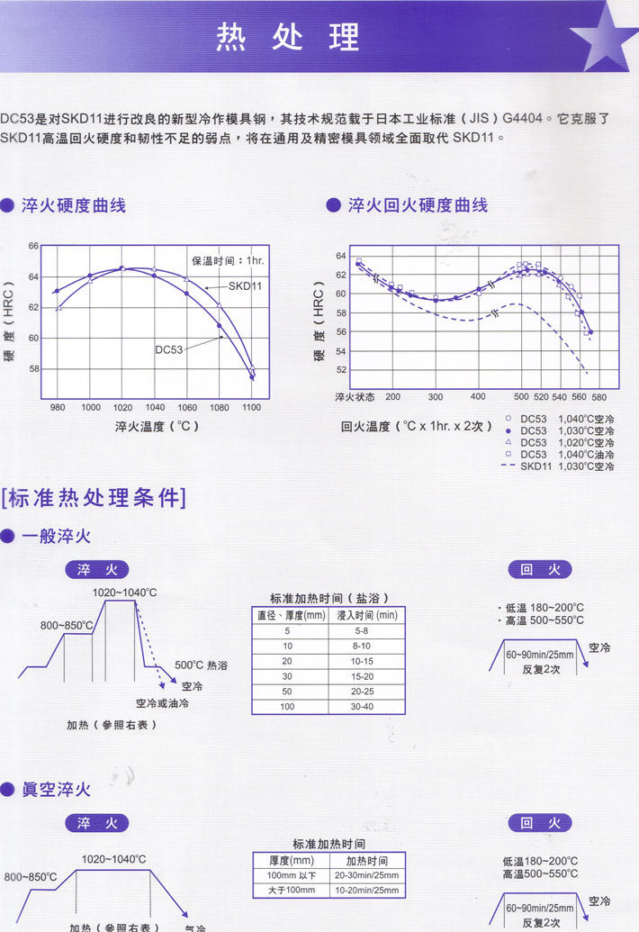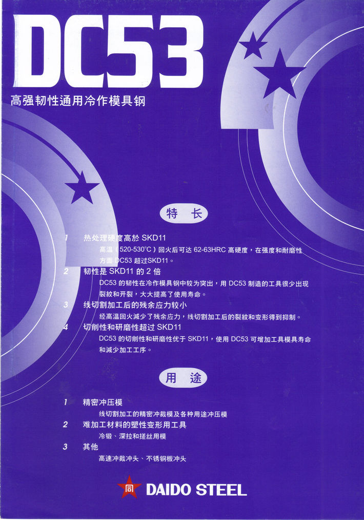 簡要描述:日本大同特殊鋼DC53高韌性模具鋼:8%Cr 高硬度*高韌性模具鋼...