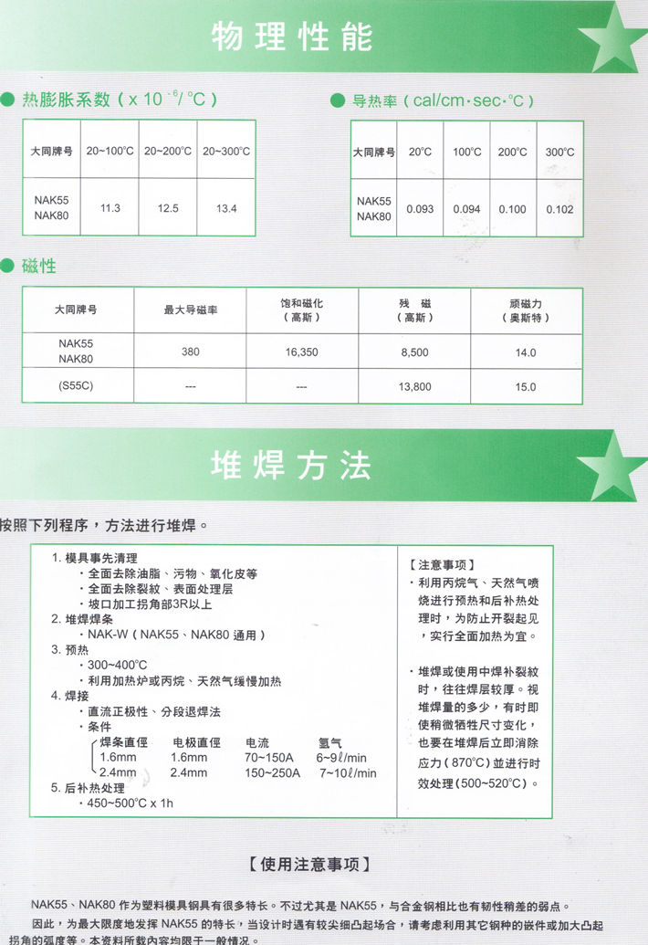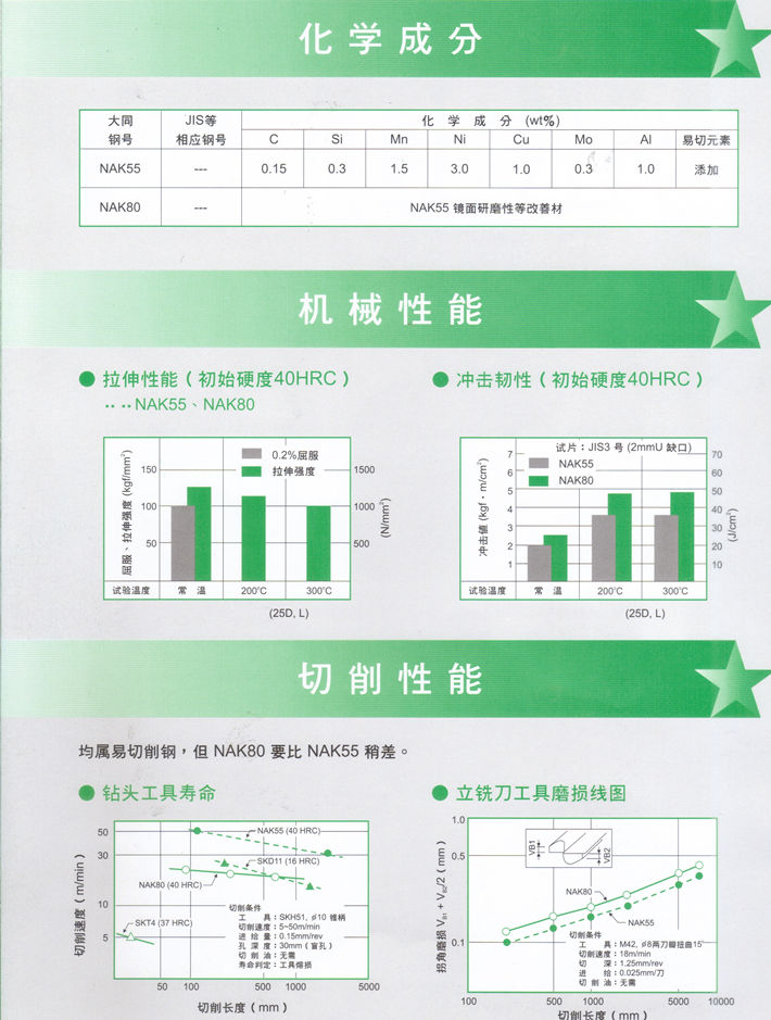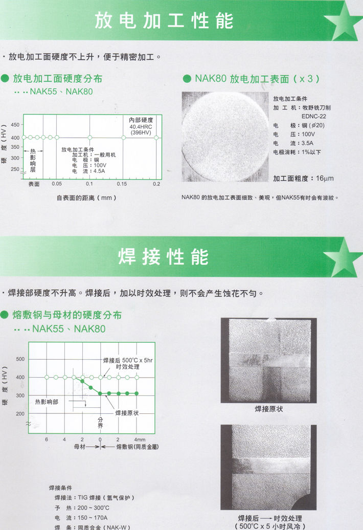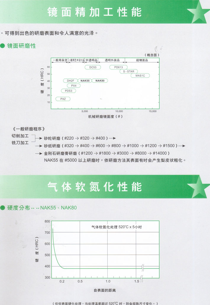 簡要描述:日本大同NAK80/NAK55(高鏡面模具鋼): NAK55:易切削型40HRC級預硬鋼 NAK80:高鏡面型40HRC級預硬鋼...